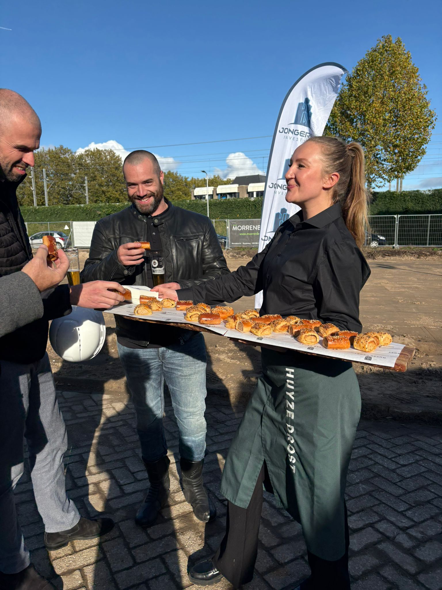 Tussen bouwhelmen en bouwtekeningen, midden op de bouwplaats, mochten wij de catering én de beleving verzorgen. En als er iets is waar we bij Huyze Drost van houden, dan is het een thema dat we tot in de kleinste details mogen doorvoeren. Dips uit kitspuiten, stoere gerechten en een team dat met helm op klaarstond om gasten te ontvangen.